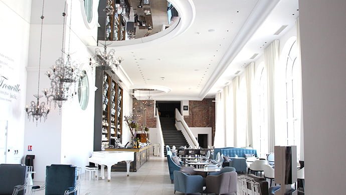 My road trip to Normandy had a goal and that was staying at Hotel Cures Marines. The location of this hotel is perfect, right at the beach. It’s an impressive big 5-star hotel with a very modern chic design adjusted to the sea; crisp white with blue accents There is an in-house spa with a pool that I haven’t reviewed, unfortunately. The wifi connection was excellent throughout the hotel.